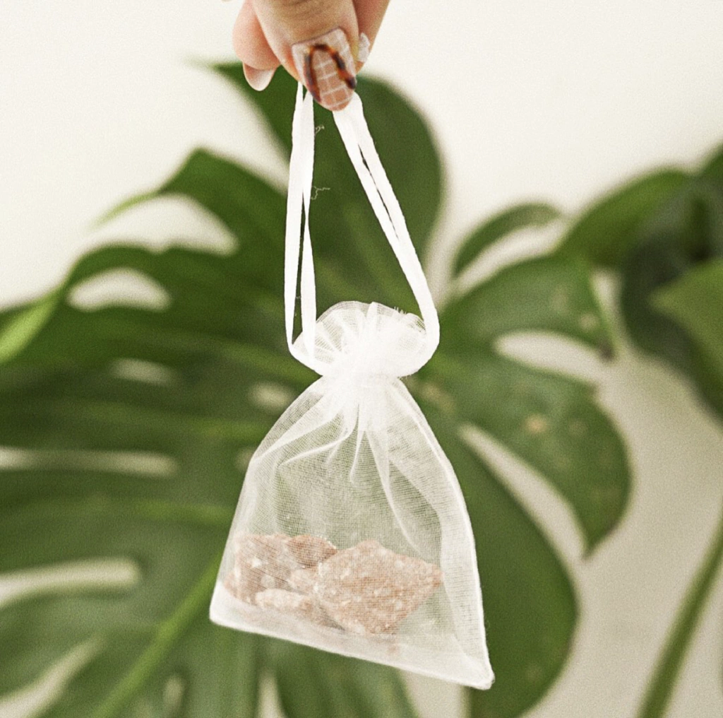 La Bolsita de Organza sirve para aprovechar el Shampoo Solido al máximo. Se ponen los restos del Shampoo adentro y se usa directamente sin sacarlo de la bolsita.